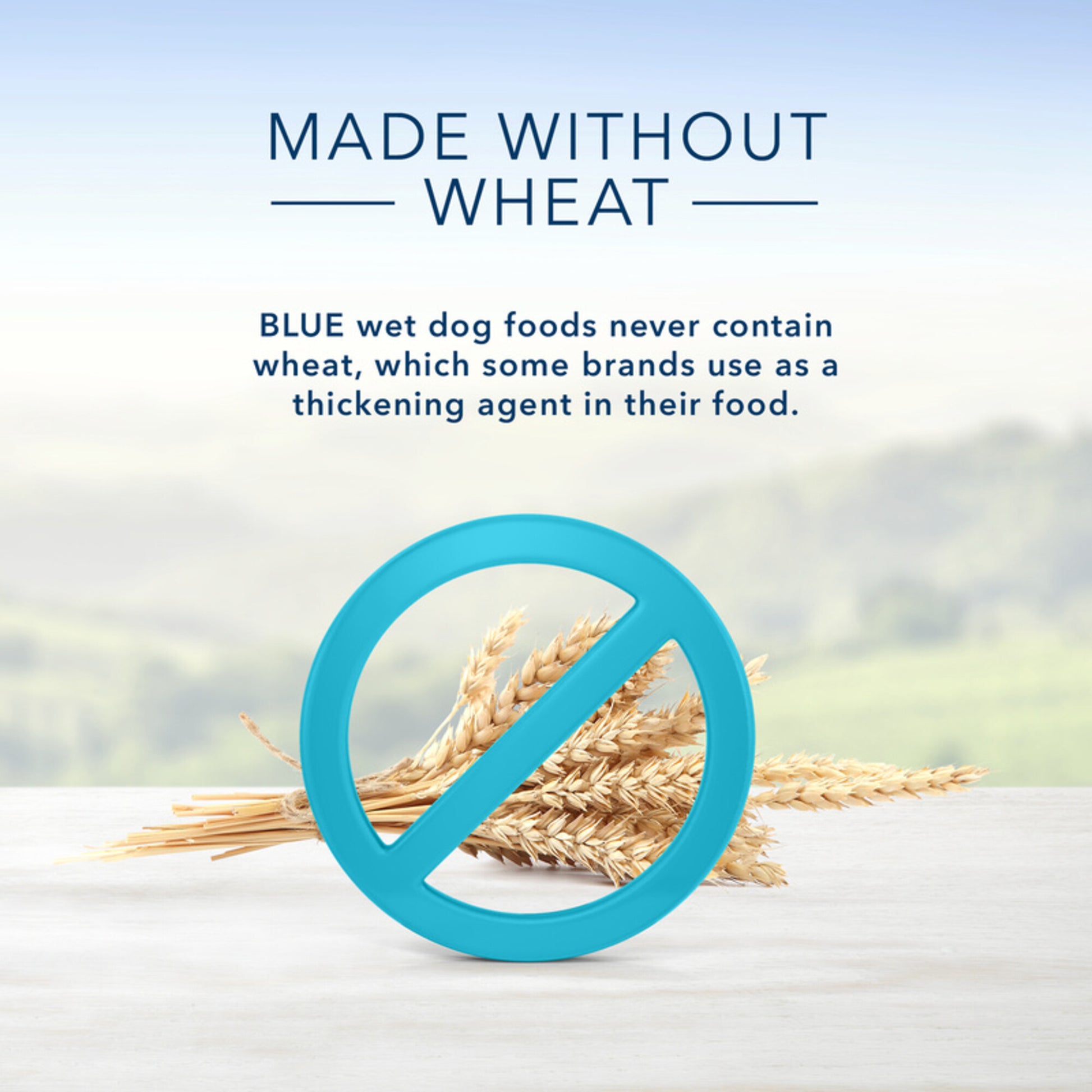 • WHOLESOME INGREDIENTS: BLUE wet dog food contains NO chicken (or poultry) by-product meals, NO corn, wheat (a common thickening agent used by other brands) or soy, and NO artificial flavors or preservatives