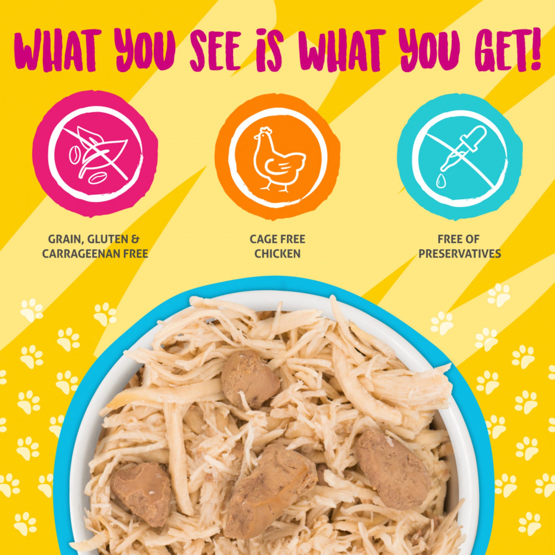 Weruva Nine Liver Canned Cat Food is full of skinless, boneless, and cage-free chicken as well as chicken liver to fill your little carnivore up with each meal. Weruva's chickens are always free of antibiotics and hormones for a healthy kitty. The shredded chicken and liver chunks are all marinated with gravy to hydrate your cat during their mealtime. Weruva Nine Liver Canned Cat Food is free of grain, GMOs, MSG, and carrageenan for a balanced meal with each can.