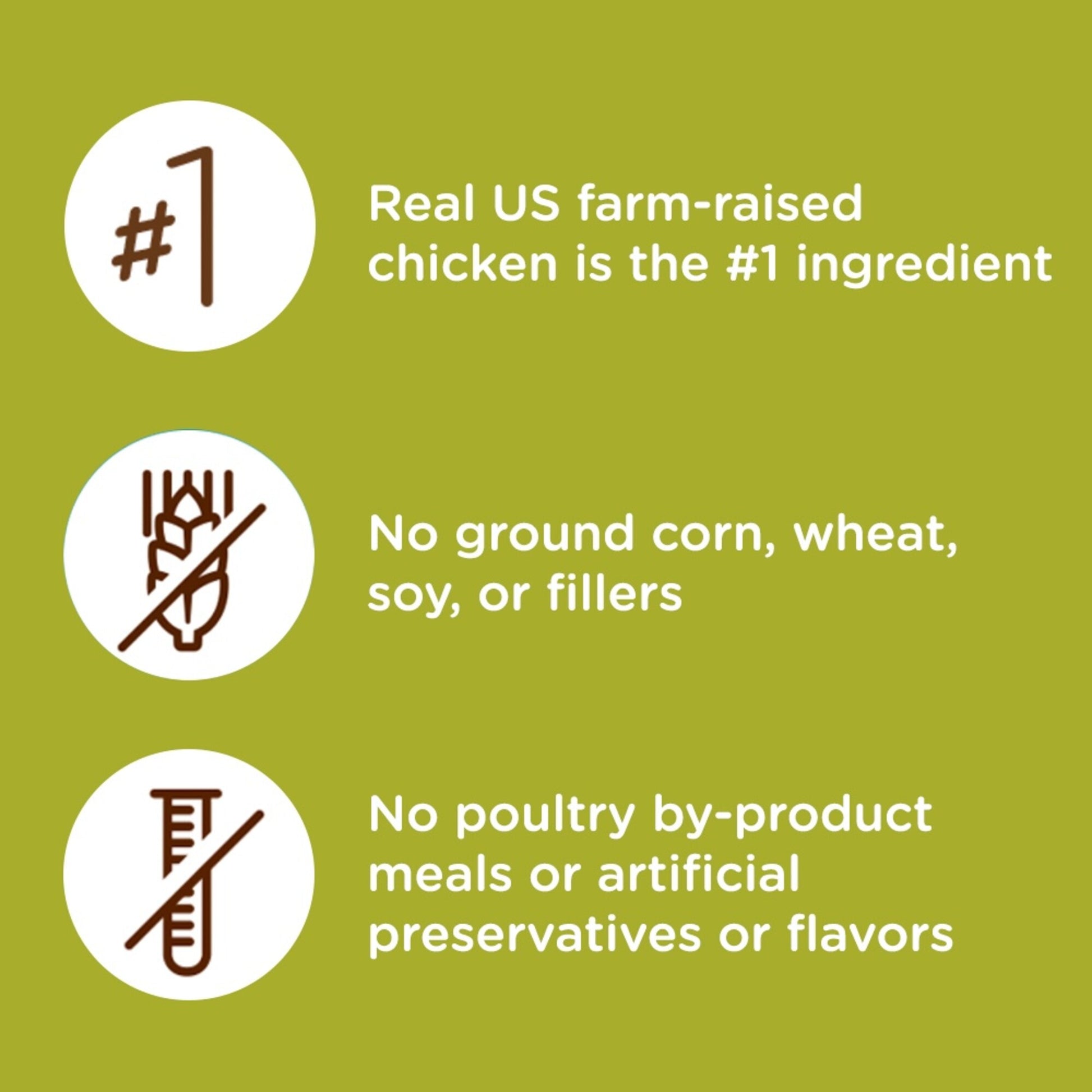 Rachael Ray Nutrish Real Chicken & Brown Rice Recipe is made with simple, natural ingredients, like real U.S. farm-raised chicken, which is always the number one ingredient, combined with wholesome brown rice, vegetables, essential vitamins, minerals and taurine. Plus there's no ground corn, wheat or soy ingredients.