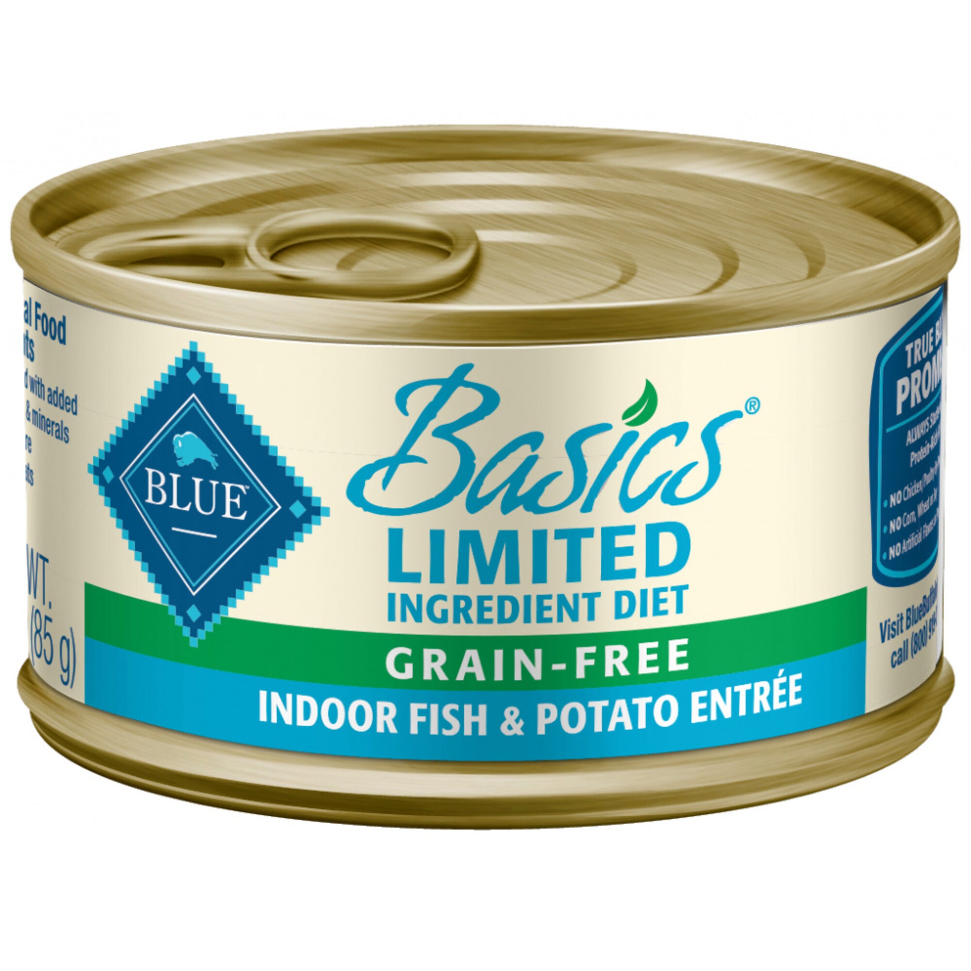 Blue Buffalo BLUE Basics Grain Free Indoor Fish and Potato Entree Canned Cat Food was created for cats who may be having sensitives to ingredients found in traditional pet foods. With added micronutrients to help support gentle digestion, Blue Buffalo BLUE Basics Grain Free Indoor Fish and Potato contains no grains, and is made with the finest holistic ingredients. Using only a single source of protein to minimize food sensitivities while maximizing the nutritional value that your cat will receive. This nutrient-rich food is made with easily digestible carbohydrates like peas and potatoes and never uses corn, wheat, soy, dairy or eggs.