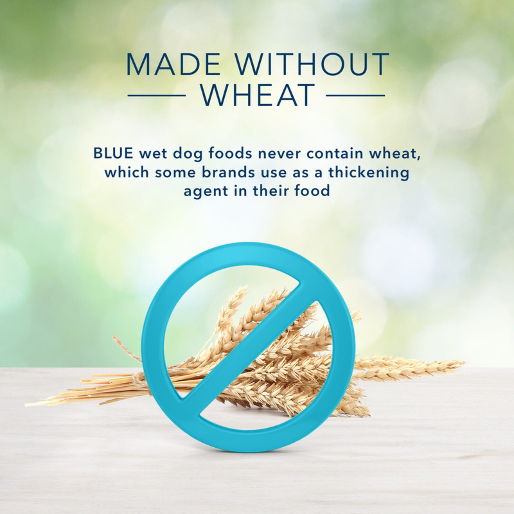 • MADE WITHOUT WHEAT: Unlike many other dog food brands, BLUE never uses wheat as a thickener in our wet dog food. There are also NO chicken (or poultry) by-product meals, and NO corn, soy, artificial flavors or preservatives