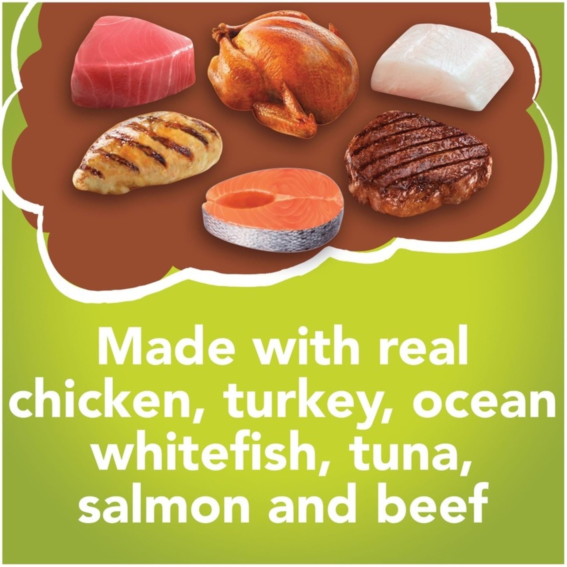 Satisfy all your cat's cravings with this Purina Friskies Gravy Sensations Pouch Favorites adult wet cat food variety pack. Each pack includes six delectable recipes, such as Gravy Sensations With Salmon and Gravy Sensations With Beef & Chicken. This collection gives your cat the savory flavors she craves along with rich gravies that have her licking her dish clean at every feeding. The tempting textures and enticing aromas tempt her to her dish every time you open a pouch, letting her know she's in for a satisfying dining experience. Because each recipe is 100% complete and balanced for adult cats, this collection makes it easy to serve your cat the wholesome nutrition she needs. Fill her dish with one of the taste sensations found in this variety pack at every feeding, or give her even more meaty meal options when you rotate between these wet cat foods and our Purina Friskies Tender & Crunchy Combo dry cat food. At Purina, we believe life is better with pets, which is why we strive to make quality our top priority in everything we make. Our team of experts formulates each recipe to meet or exceed industry guidelines for pet food, so your darling cat gets the safe, delicious and nutritious meals you expect from a trusted brand. Each batch of this cat food collection undergoes rigorous checks for quality and safety to provide you with added peace of mind. Your cat gets the mouthwatering meals she loves, and you get the comfort that comes from knowing your adult cat is getting the nutrition she needs to be her playful, adventurous self. We value sustainability as a core concept at Purina, which is one reason why every pouch in this collection of wet cat foods is conveniently recyclable. Serve selections from this Purina Friskies Gravy Sensations Pouch Favorites adult wet cat food variety pack to your cat each day, and let her know she's the center of your world.