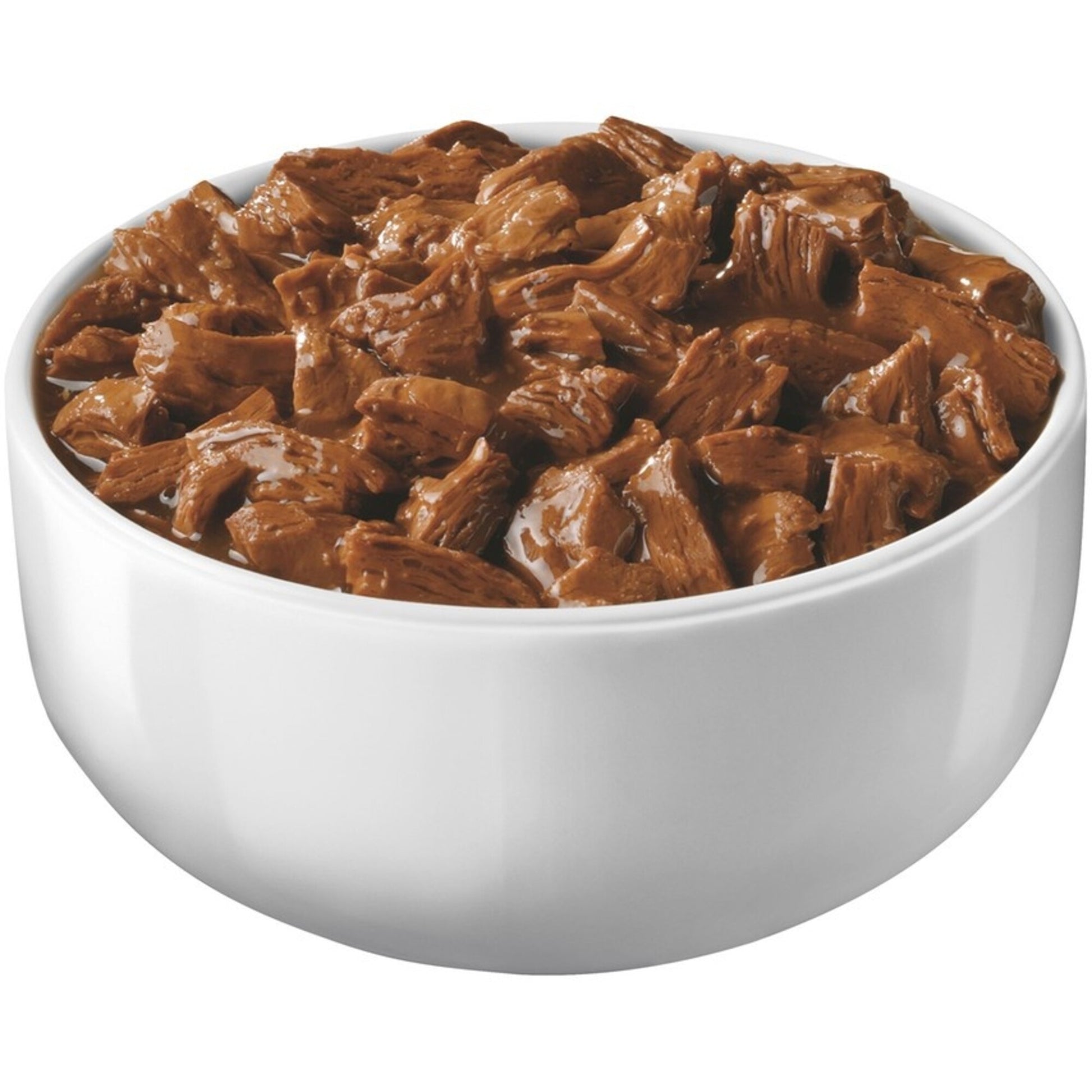 Give your cat the meaty goodness she craves when you fill her dish with Purina Friskies Prime Filets With Beef in Gravy wet cat food. Real beef delivers the decadent taste she craves, and the tender shredded chunks give her something delicious to sink her teeth into. Savory juices add to the moist, mouthwatering texture to make every bite a feast for her senses, and the rich aroma lets her know that a delectable meal is just around the corner. Each serving contains 100% complete and balanced nutrition for the healthy maintenance of adult cats, so she can enjoy this Friskies Prime Filets food at every stage of her playful, happy adult life. Satisfy her hunger for meaty morsels when you offer up this Purina Friskies Prime Filets recipe, and show her just how much you care about her health and her happiness.
