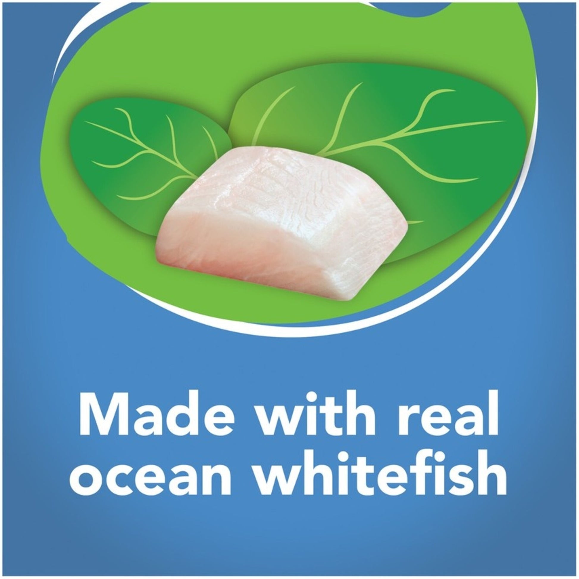 Set down a nightly dinner dish of Purina Friskies Flaked Ocean Whitefish Dinner With Garden Greens in Sauce adult wet cat food, and enjoy the feeling of feeding your adult cat the kind of nutrient-packed meal she needs to stay happy and well-nourished. Crafted with real ocean whitefish for essential protein, this hearty meal has the fishy flavor your little carnivore will love to eat. Carved into tender, succulent flakes, the fish in this can is easy for your cat to chew and swallow — before going in for another delicious bite. Savory garden greens help fill out this meal with those extra healthy bits that even a dedicated meat eater needs from time to time. Added vitamins and minerals round out the high-quality nutrition and help promote overall good health. This recipe is crafted especially for your indoor cat to enjoy, so she can have the pleasure of daily seafood meals without the sandy paws. Try diversifying her indoor-specific diet with regular meals of Friskies Indoor Delights dry cat food. With Friskies, taste adventures are just around the corner — but safety comes first. And because you've always done your best to look after your indoor cat, and we always try to help you by providing the highest-quality meals we can for her. That's why all of our products are manufactured in Purina-owned plants in the United States and must pass a stringent quality control system that meets or exceeds state and federal guidelines for pet food. Nothing matters more to us than the quality, safety and nutritional value of the food you feed your cat, which is why we carefully craft every meal to support your cat's whole-body nutrition and to promote overall good health. We're committed to giving you the best we can, because the meals you set out for your cat are the same as the meals we serve our own cats at home. So pop open a can of this Purina Friskies Flaked Ocean Whitefish Dinner wet cat food, and let the taste adventure begin.
