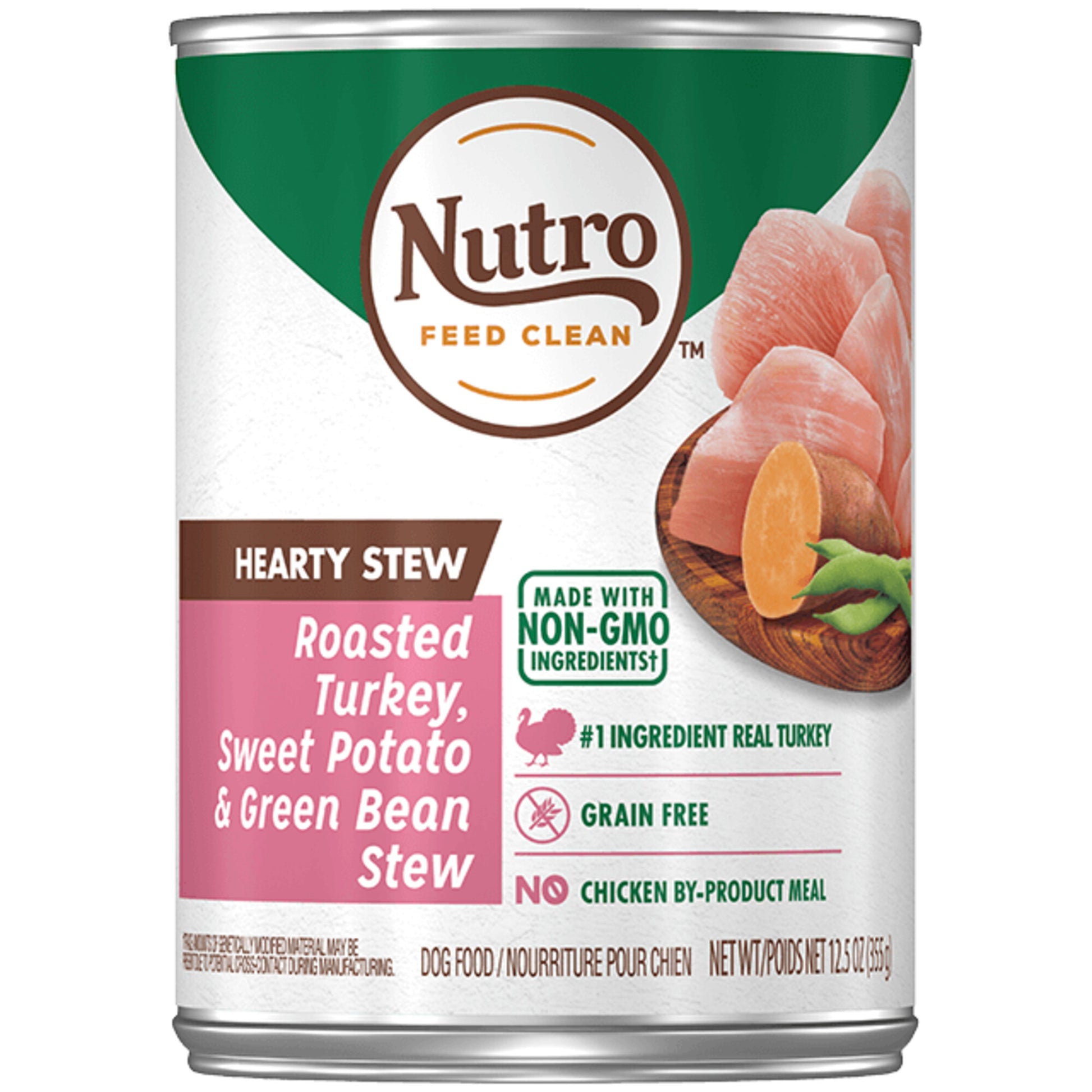 Your dog will do a happy dance when you open a can of NUTRO™ HEARTY STEW Roasted Turkey, Sweet Potato & Green Bean Stew. Farm-raised turkey is the first ingredient in this delicious grain-free canned wet dog food, and it's rich in nutrients and full of flavor that adult dogs big and small go crazy for. This NUTRO recipe is made with non-GMO ingredients†, NO chicken by-product meal, NO corn, wheat, or soy, and NO artificial flavors, colors, or preservatives. Plus, it’s made at facilities committed to zero waste to landfill. Give your dog NUTRO HEARTY STEW recipes with the NUTRO FEED CLEAN logo every day for ultimate tail wags.
