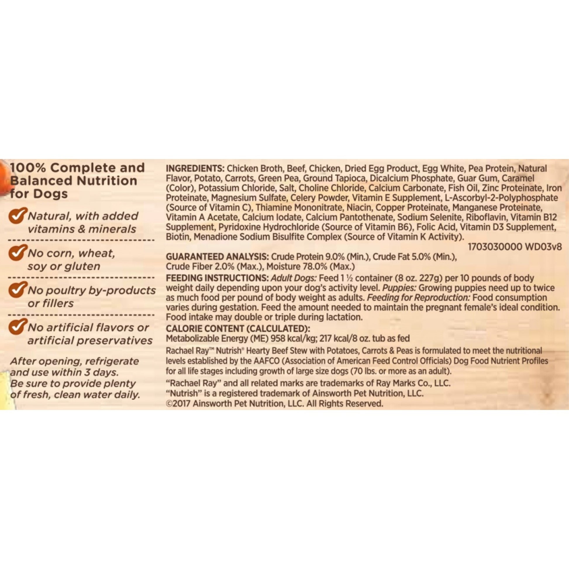 Rachael Ray Nutrish Hearty Beef Stew Recipe is made with hearty chunks of beef plus garden vegetables like peas, carrots and potatoes, all simmered in a yummy homestyle beef gravy.