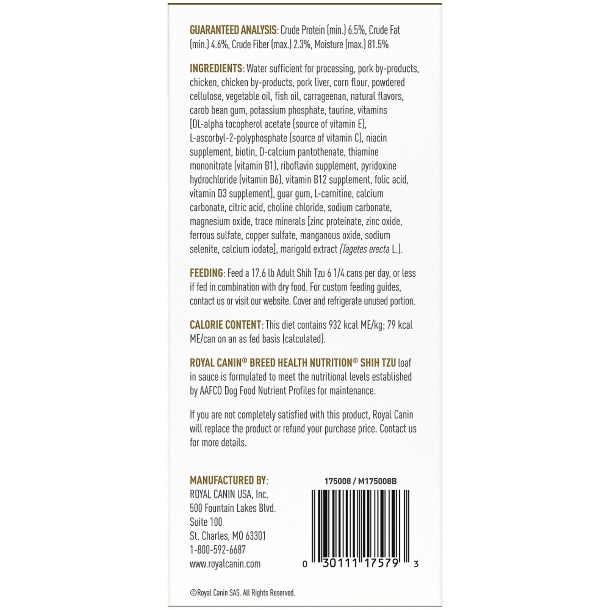 Complete and balanced canned dog food can be fed alone or mixed with Royal Canin Shih Tzu Adult dry dog food