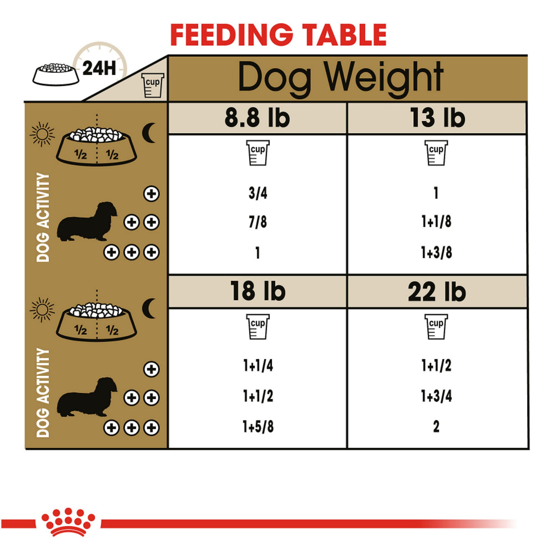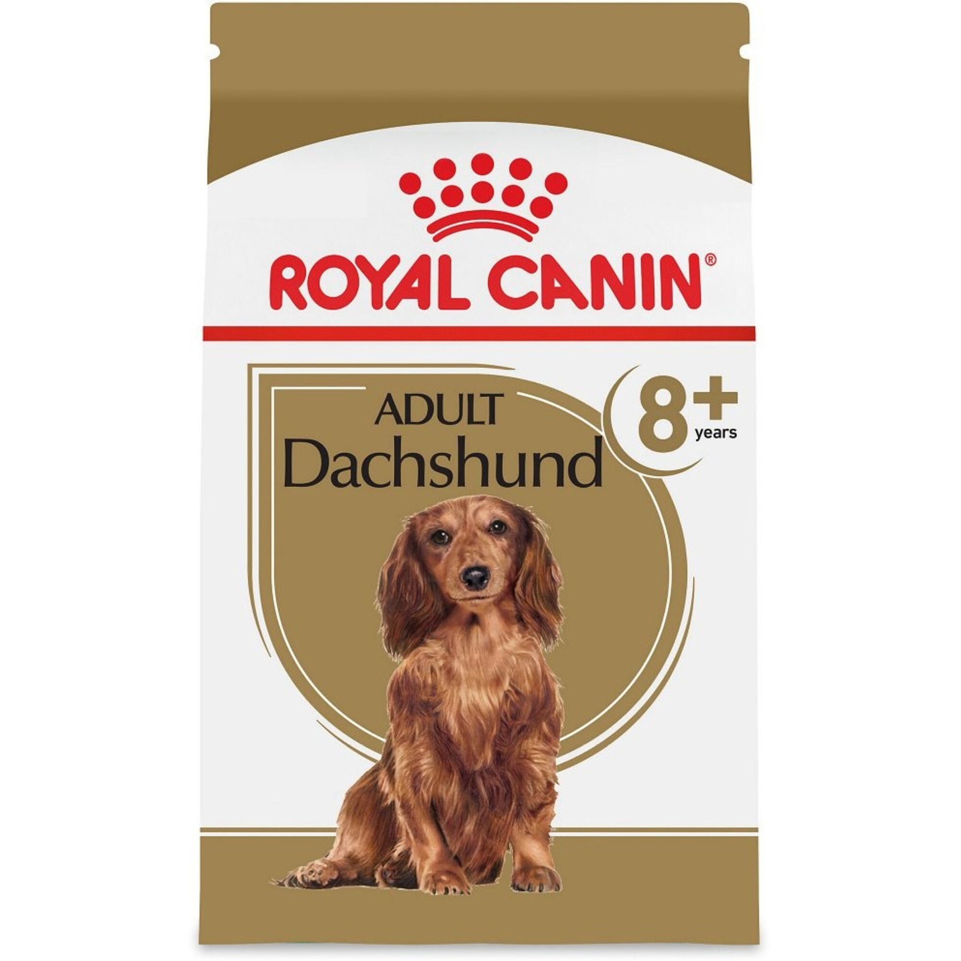 Royal Canin Dachshund Adult 8+ dry dog food is tailor-made nutrition created just for your pure breed senior Dachshund.Whether you have a miniature or standard Dachshund, this exclusive breed-specific diet is uniquely formulated for your older Dachshund, with the specific nutrients to help them thrive.The small kibble is highly palatable and easily rehydratable with warm water to make it soft and easy for tiny jaws and older teeth to eat.An exclusive blend of nutrients and antioxidants helps promote healthy aging.Precise levels of calcium and phosphorus support bone and joint health.And to help prevent your older sausage dog from getting too plump, this formula contains adjusted nutrients and calories so they can maintain an ideal weight.
