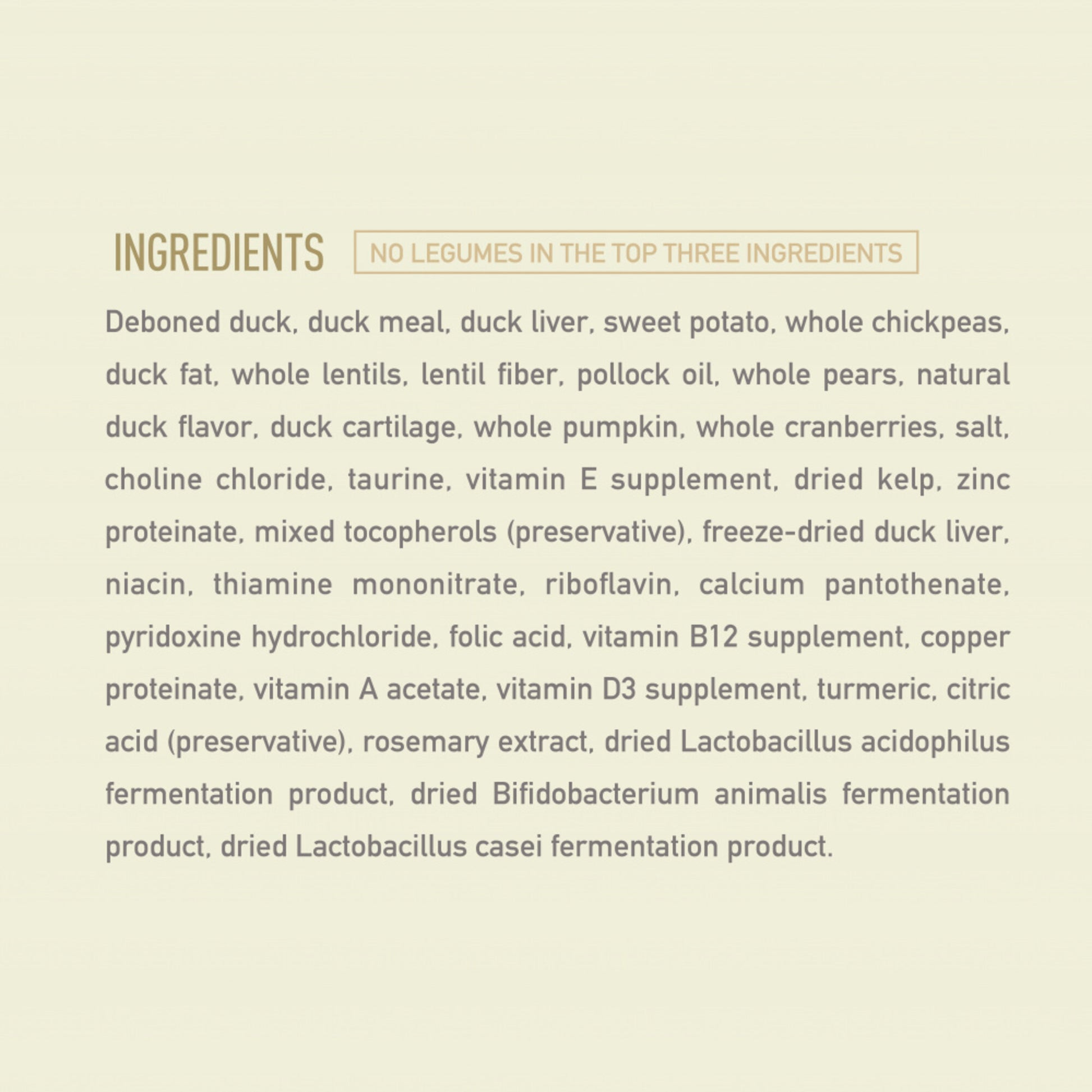 -1/2 of the duck ingredients in ACANA Singles Duck & Pear are RAW, delivering nutrients in their most natural and nourishing form, providing a flavor your dog will love