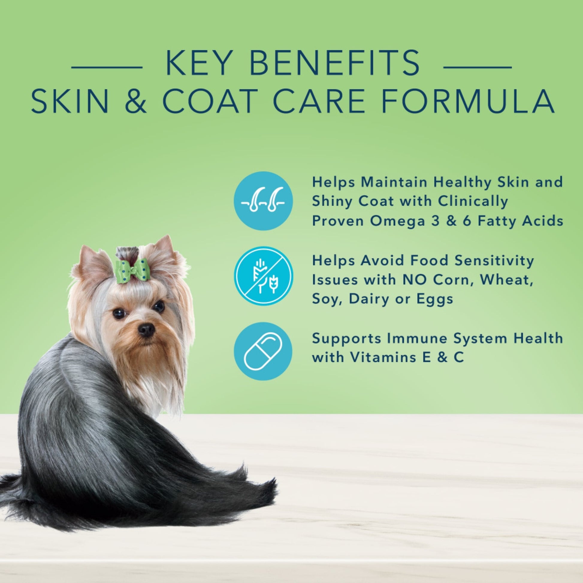 • SENSITIVE SKIN DOG FOOD: Our Perfect Coat adult dog food is made with omega 3 & 6 fatty acids clinically proven to support healthy skin and shiny coat