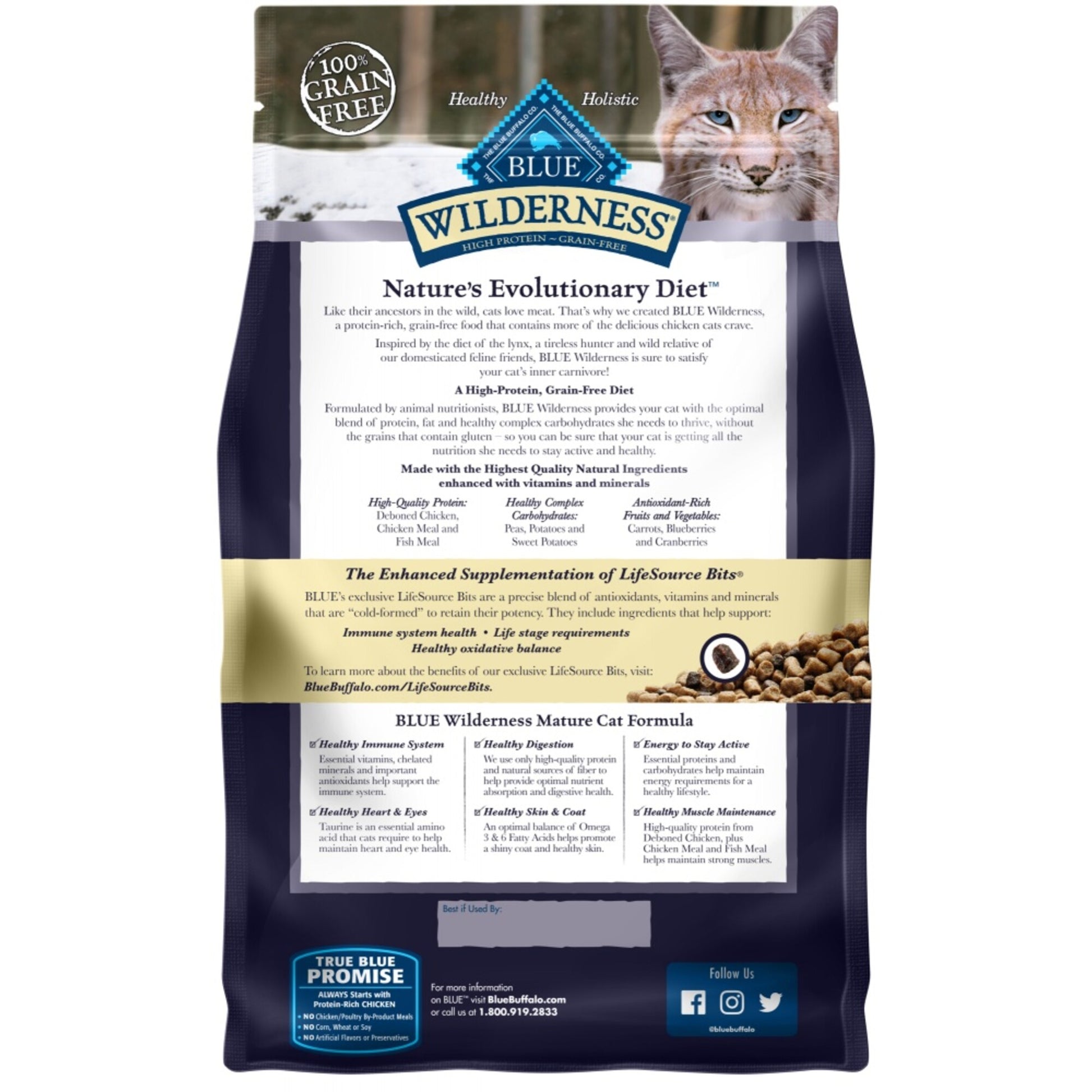 Inspired by the diet of the lynx, a tireless and legendary hunter, BLUE Wilderness is a protein-rich, grain-free food that contains more of the delicious meat cats love.BLUE Wilderness is a product of the Blue Buffalo company. Based in the United States, Blue Buffalo makes premium-quality pet foods featuring real meat, fruit and vegetables.