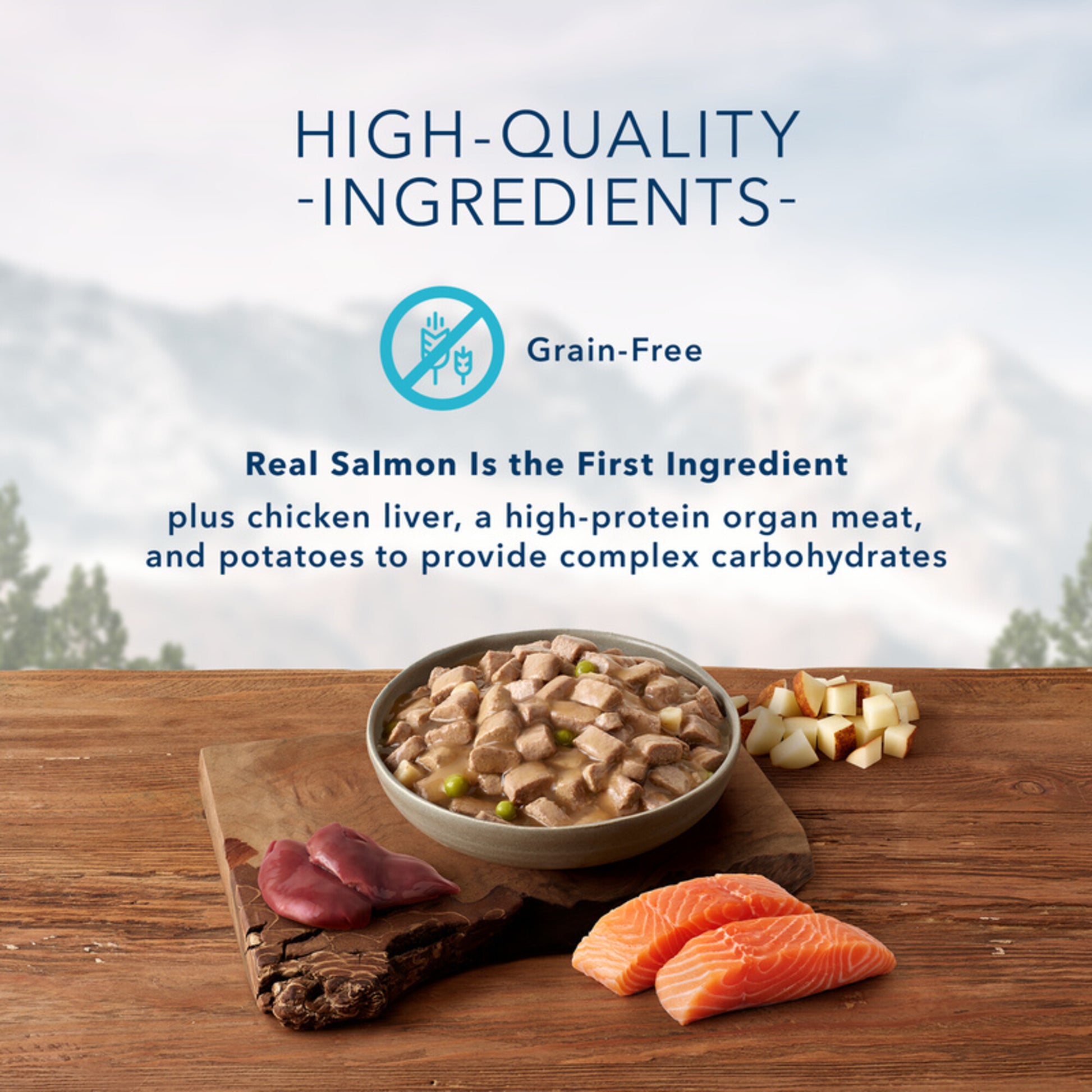 Inspired by a favorite hunting ground of the wolf and packed with tender chunks of real salmon in a hearty gravy, BLUE Wilderness Wolf Creek Stew is made to feed your dog’s wild side. Made with real salmon as the first ingredient, plus fruits and vegetables, this grain free recipe contains the finest natural ingredients enhanced with vitamins and minerals. Formulated for the health and well-being of your adult dog, this wet dog food features protein from real salmon to help supply the energy he needs while promoting healthy muscle growth