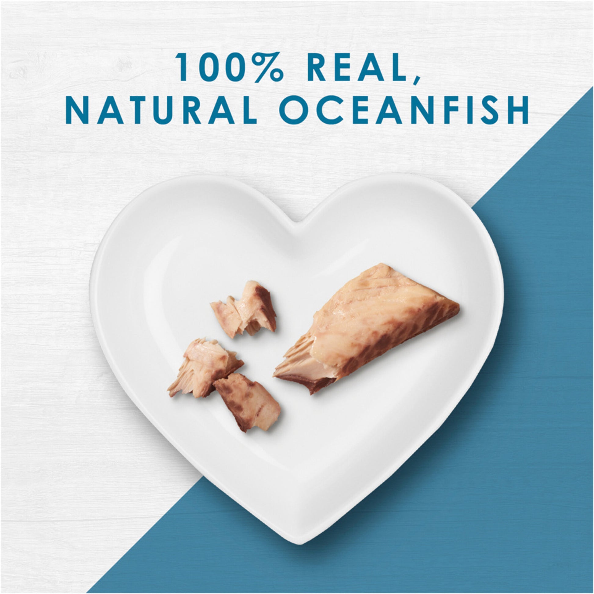 Pamper your cat with Purina Fancy Feast Purely Filets Natural Oceanfish adult wet cat food complement, and give her a delectable natural food. This wet cat food complement features 100% natural seafood you can feel confident serving to your feline friend. Each tender filet delivers a tempting texture, and each bite gives her the taste cats love. Serve each filet of natural oceanfish whole, or flaked over your cat's regular food for a delectable taste and texture combination she's bound to thank you for. With its real, recognizable appearance, this wet cat food complement looks good enough for you but is made specifically for your adult cat. Give her nourishment in a purely natural, purely delicious gourmet cat food complement that's worthy of her.