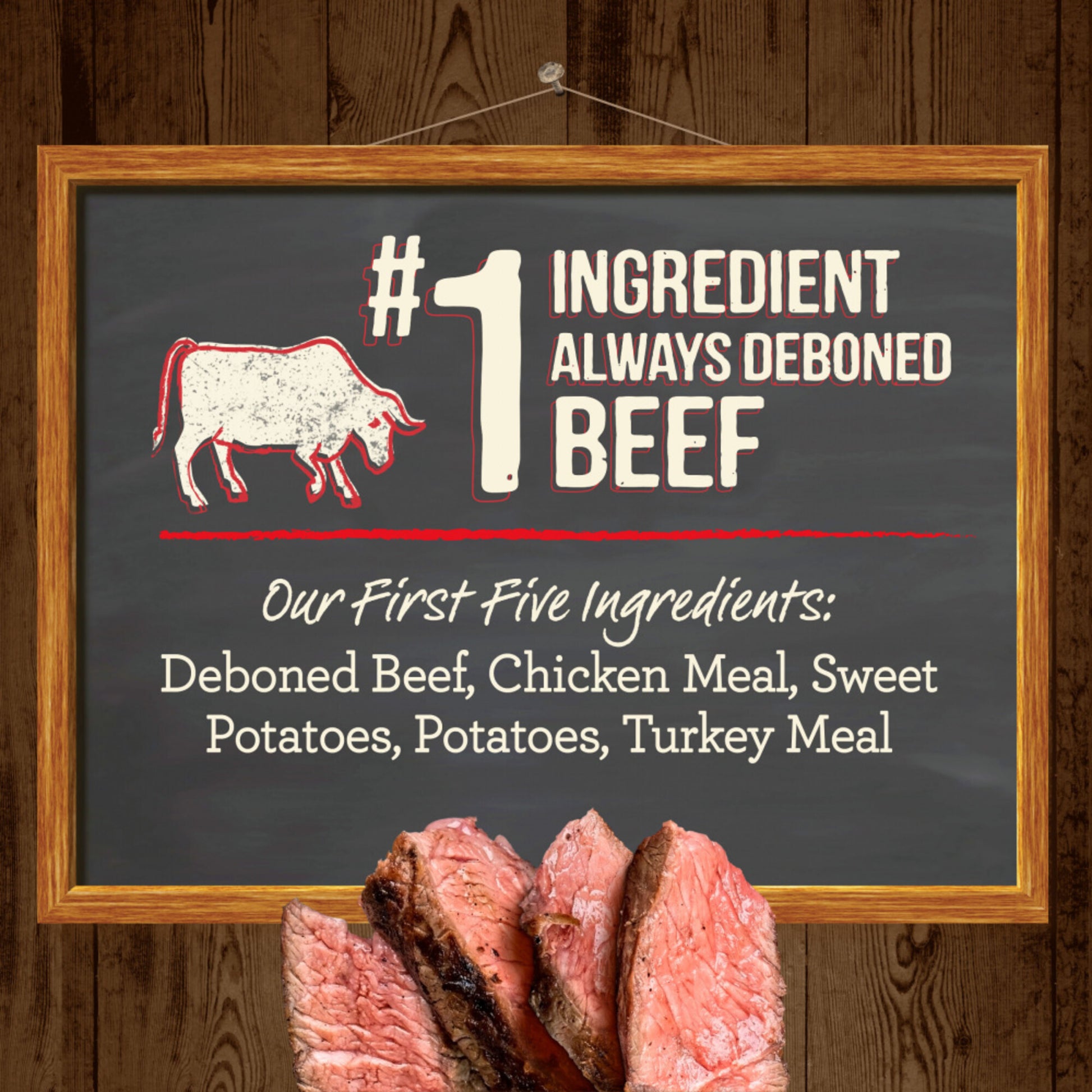 The Merrick Grain Free dog food story is one of superior nutrition, delicious taste and using the highest quality ingredients. It’s about staying true to our roots and staying put in our original Hereford, Texas, USA kitchen—the one where Garth Merrick started our company and where we still hand craft our natural dog food recipes today. All Merrick Grain Free dry dog food recipes start with real deboned meat and real whole foods like sweet potatoes, blueberries, peas and more to provide natural dog food nutrition that’s complete and balanced—with leading levels of quality protein, plus Omega-6 and Omega-3 fatty acids to ensure great looking, healthy skin and coat.