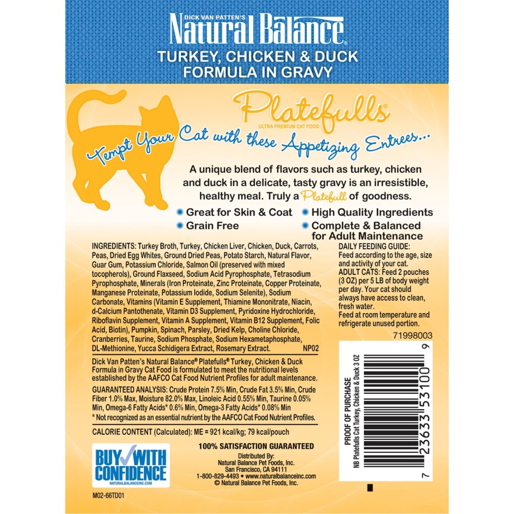 Natural Balance Platefulls Regular Grain Free Turkey Chicken and Duck in Gravy Pouch Wet Cat Food