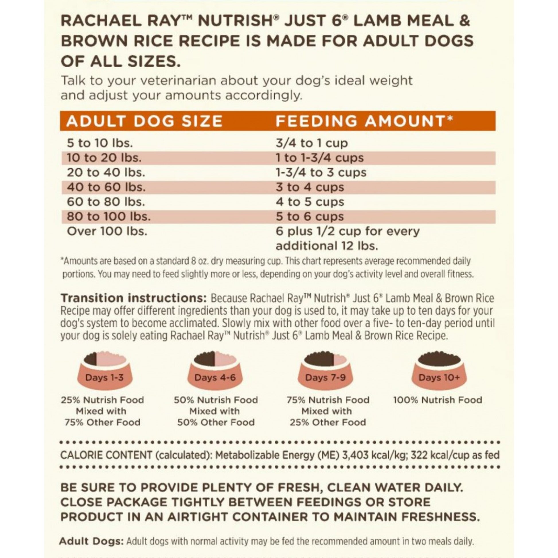 Rachael Ray Nutrish Just 6 Limited Ingredient Diet Lamb Meal & Brown Rice Recipe Dry Dog Food